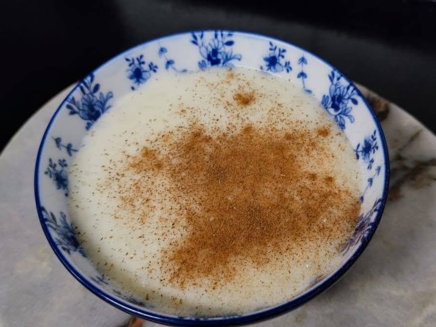 Arroz con leche acompañadas de canela (mucha canela)